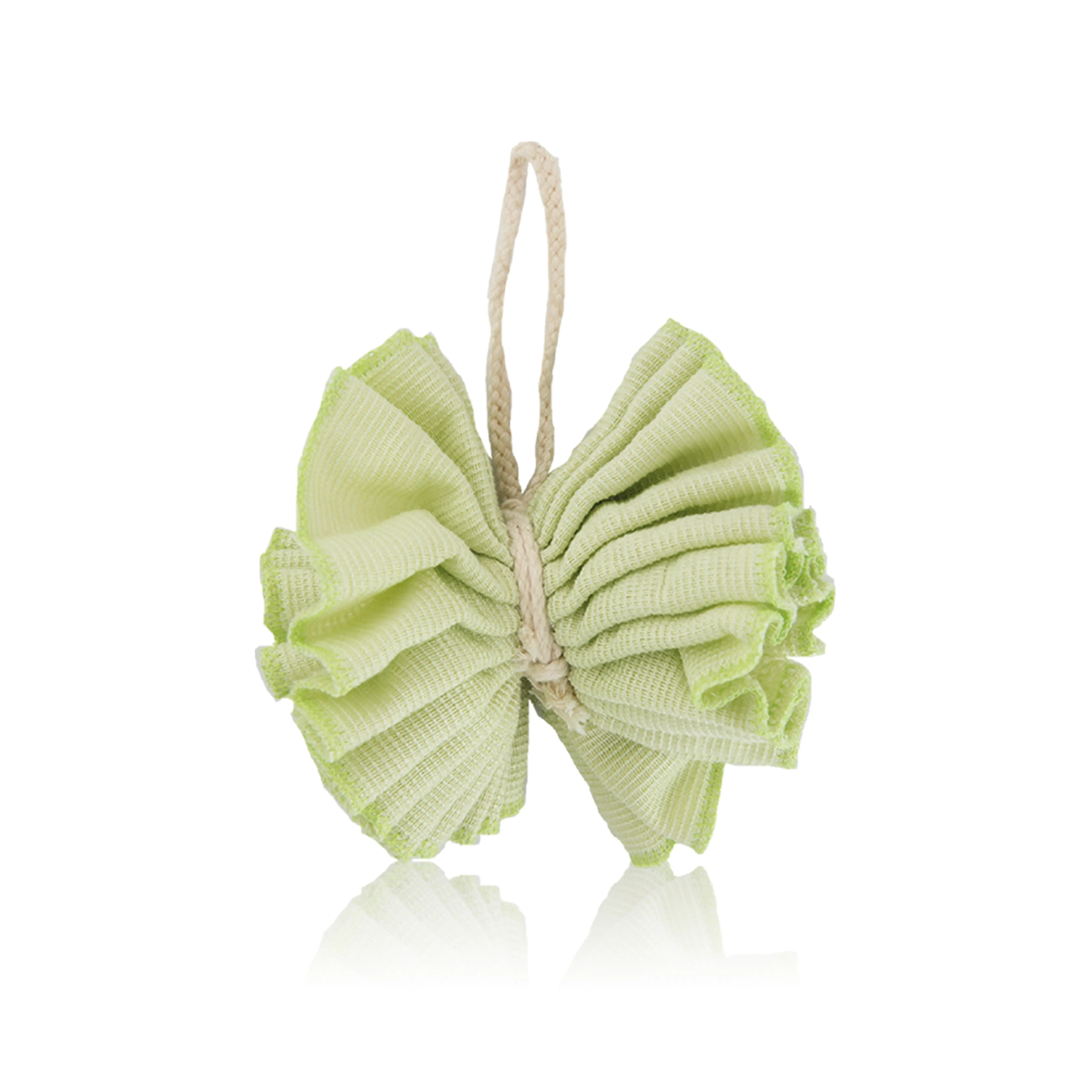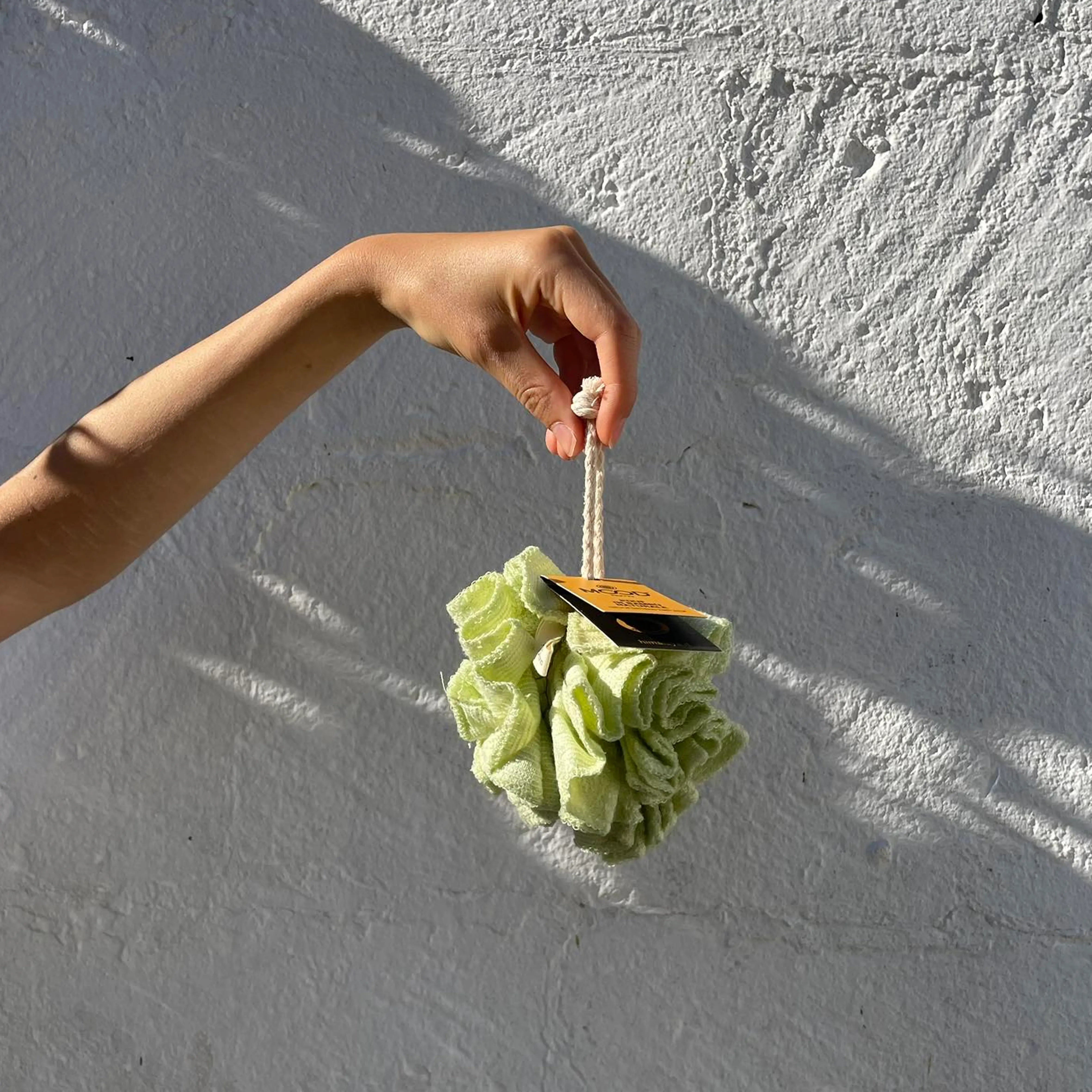 The bamboo fiber bath pouf is soft, gentle on the skin and cleanses thoroughly, generating a rich lather. Rinse in clean running water and let dry naturally after each use.