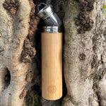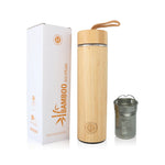 Wide-mouth bottle with infuser for tea, herbal teas, and coffee, made of high-quality double-walled stainless steel for strength, durability, and thermal insulation. BPA-free, it's an eco-friendly choice and ideal for everyday use at home, in the office, and outdoors. The eco-friendly bamboo exterior adds elegance and warmth. The bottle is certified food-safe and ensures optimal preservation of beverages, preserving and maintaining their flavor. A gift for you, a gift for the world.