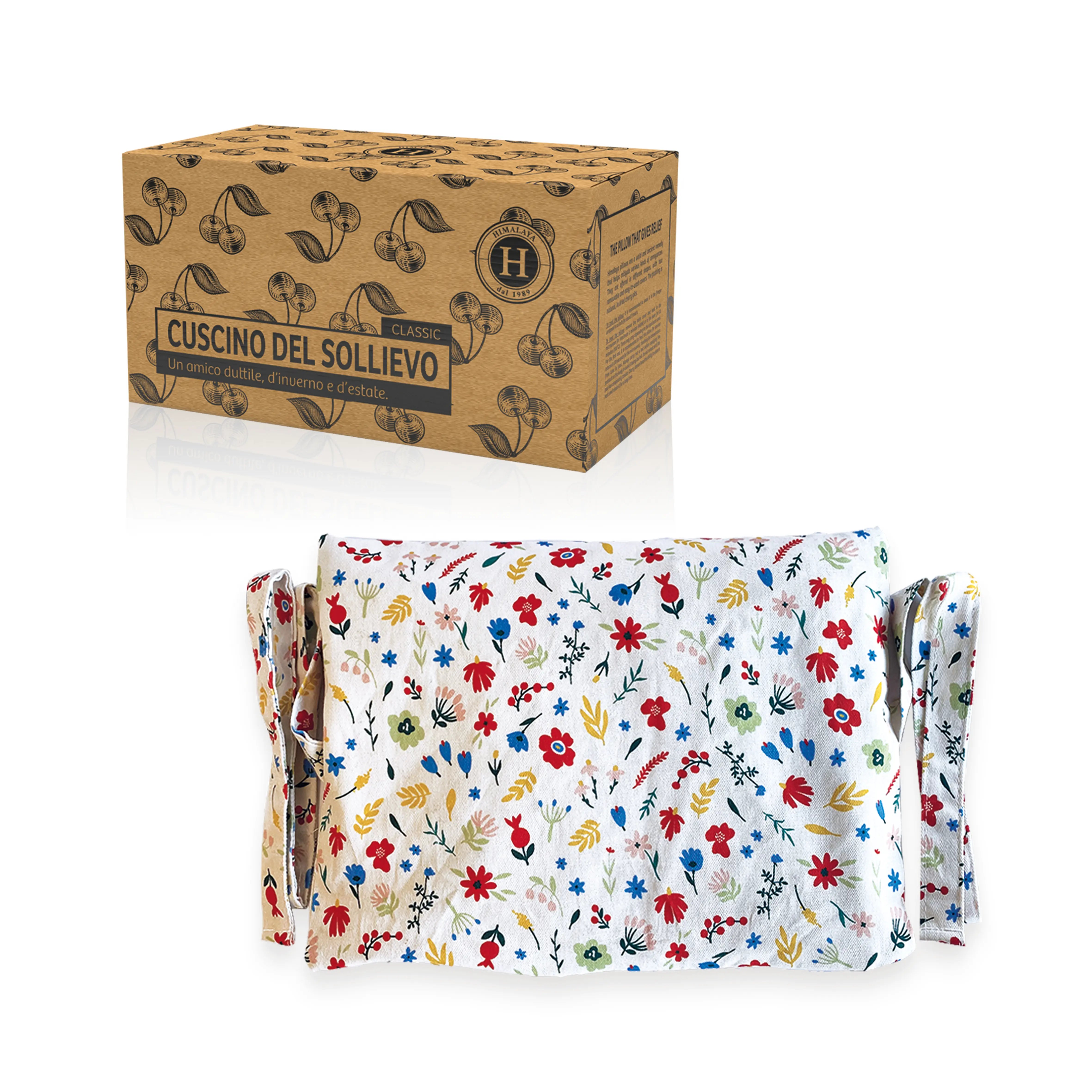 TO HEAT THE PILLOW: remove the outer cover and heat in the microwave for up to 2 minutes (600W) or in the oven for 10 minutes (100 °C). Times may vary depending on the appliance used. For the first use, we recommend heating the pillow for shorter intervals (30 seconds for the microwave), checking the temperature each time. Always test the product on the body before applying it to avoid it being too hot. Wait until the pillow has cooled down before reheating. Cherry stones have the ability to absorb heat and retain it for a long time.