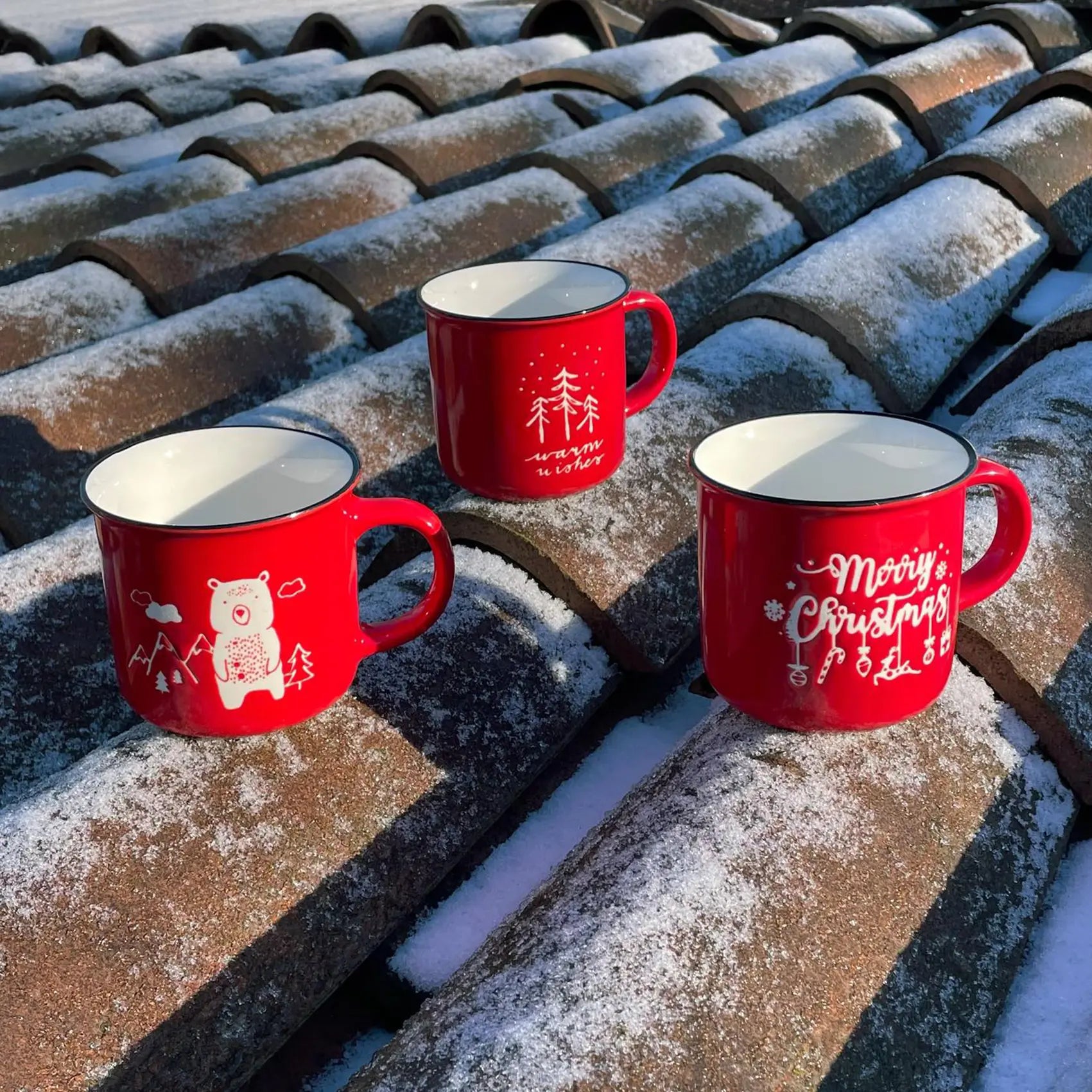Set of three mugs each contained in a cute house-shaped gift box. The ceramic mug evokes the classicism of a retro mug, combined with the modern and cheerful design of Christmas illustrations.