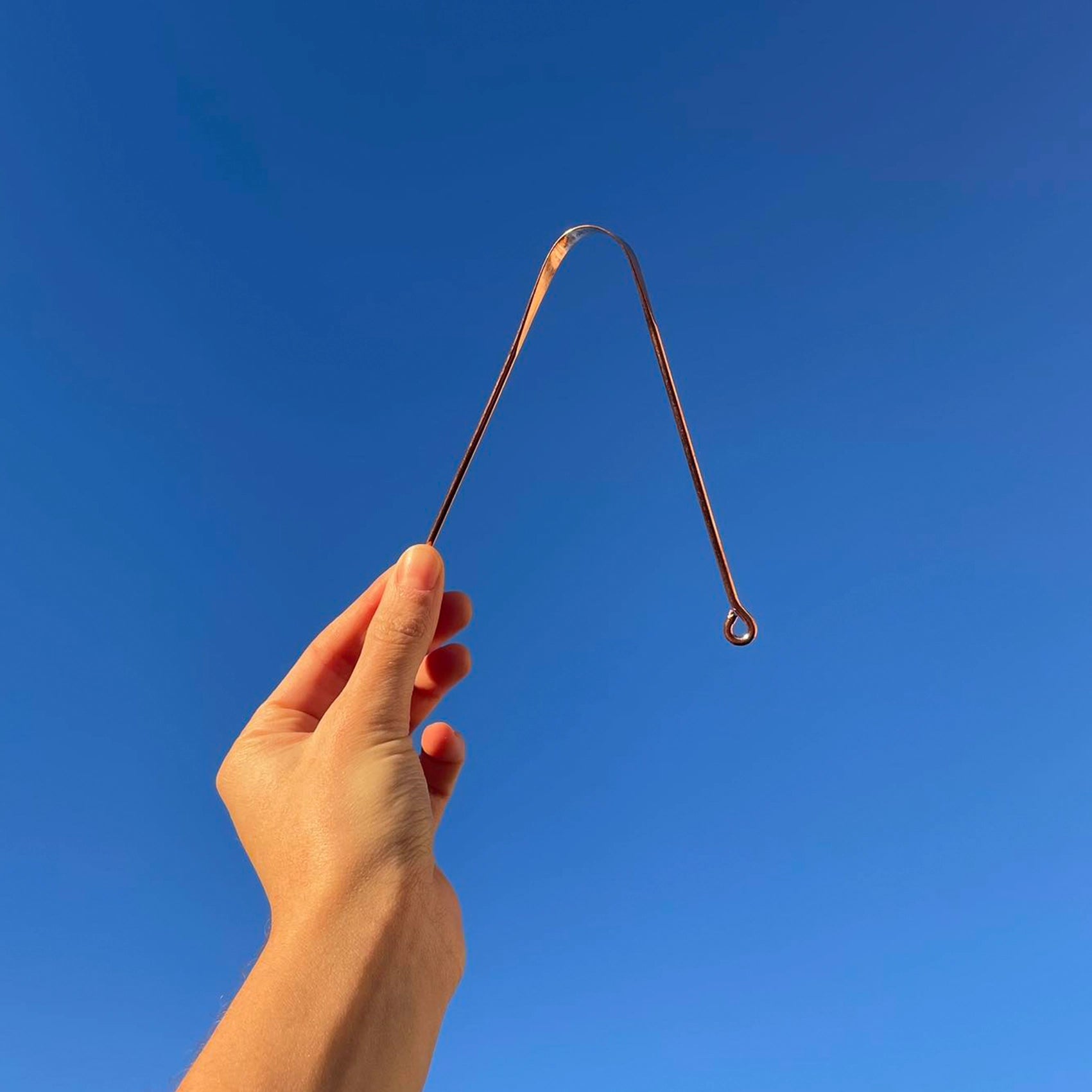 Grasp the ends of the tongue scraper and, placing the rounded part on the bottom of the tongue, scrape gently and repeatedly, taking care to rinse it under running water after each pass. Repeat the operation until all impurities have been completely removed.