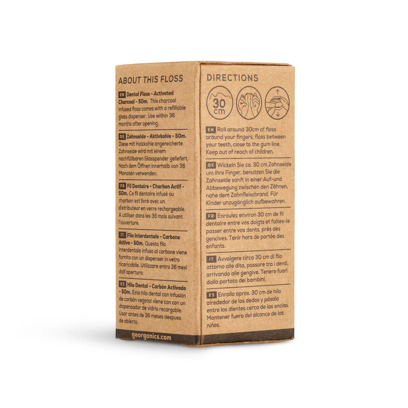 Polyester Floss, Euphorbia Cerifera Wax, (Bamboo) Charcoal Powder, Mentha Piperita Herb Oil, Sodium. Fluoride <1350ppm