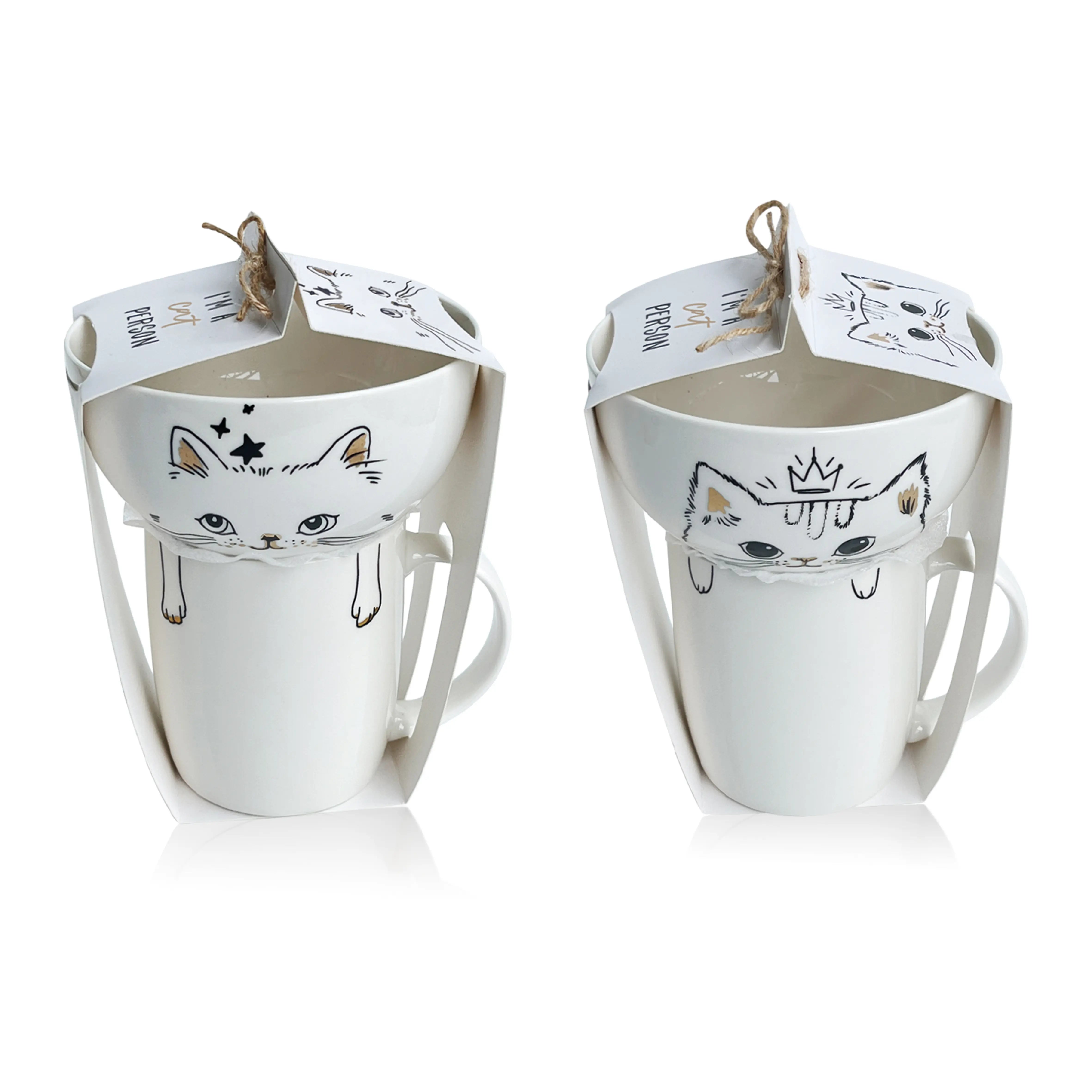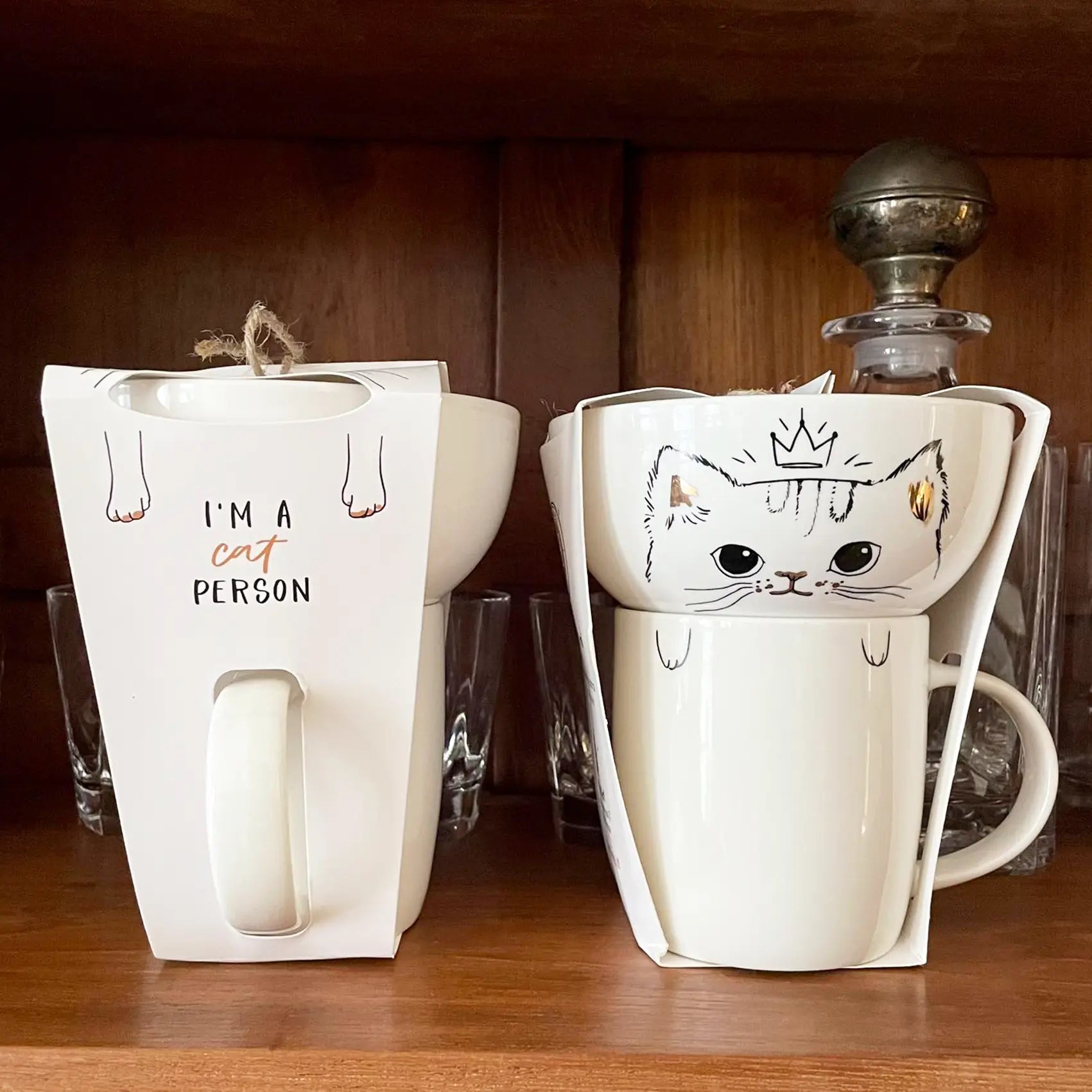 I'm a Cat Person consists of a cup and a bowl, which also functions as a lid, ideal for breakfast or any snack. It is offered in two variations in a unique packaging, which makes it an original gift idea for all cat lovers.