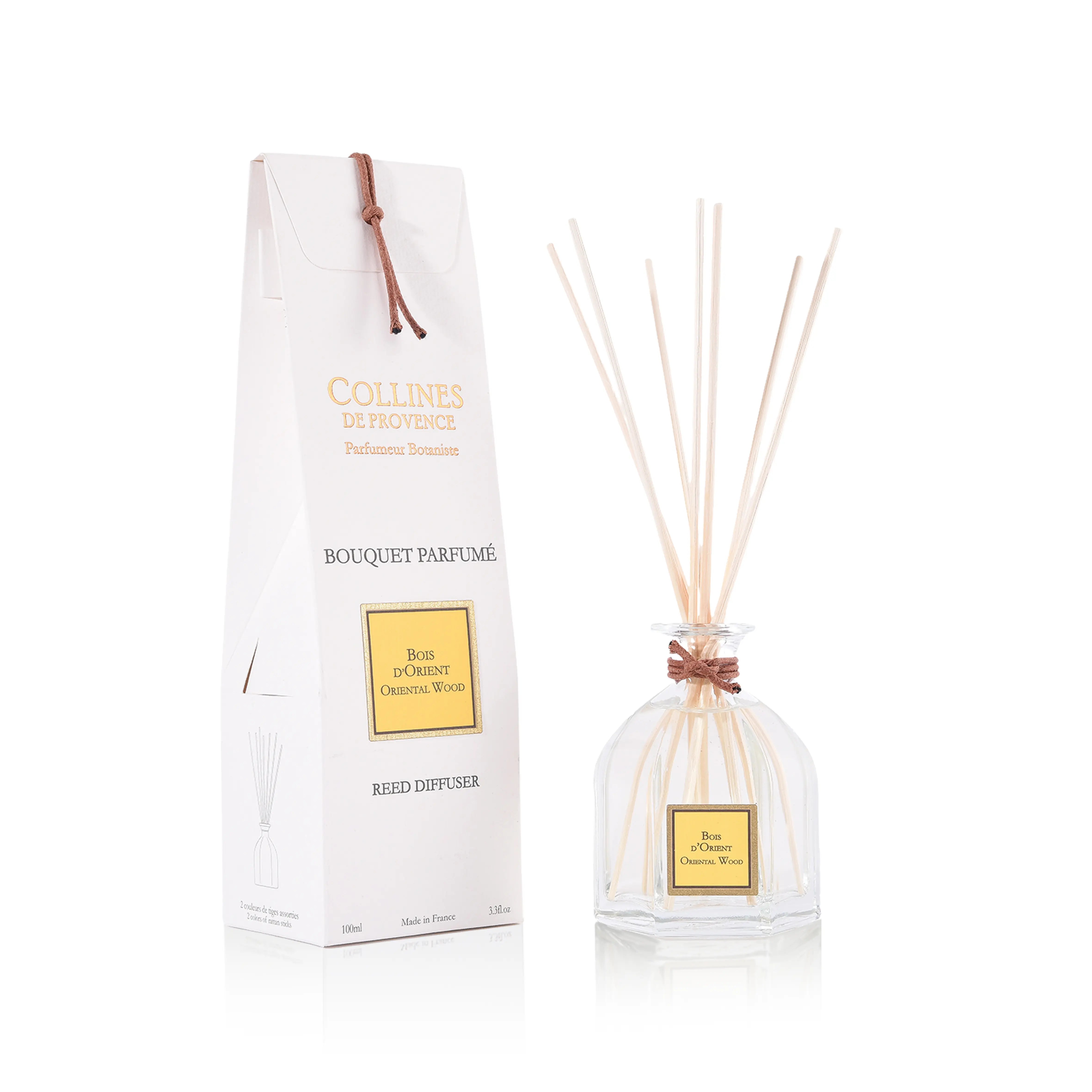 Exclusive perfume diffusers formulated by Collines de Provence master perfumers and hand-packaged in the Mane workshops in Provence. The natural wooden sticks release a constant flow of perfume, for an intense and long-lasting fragrance.