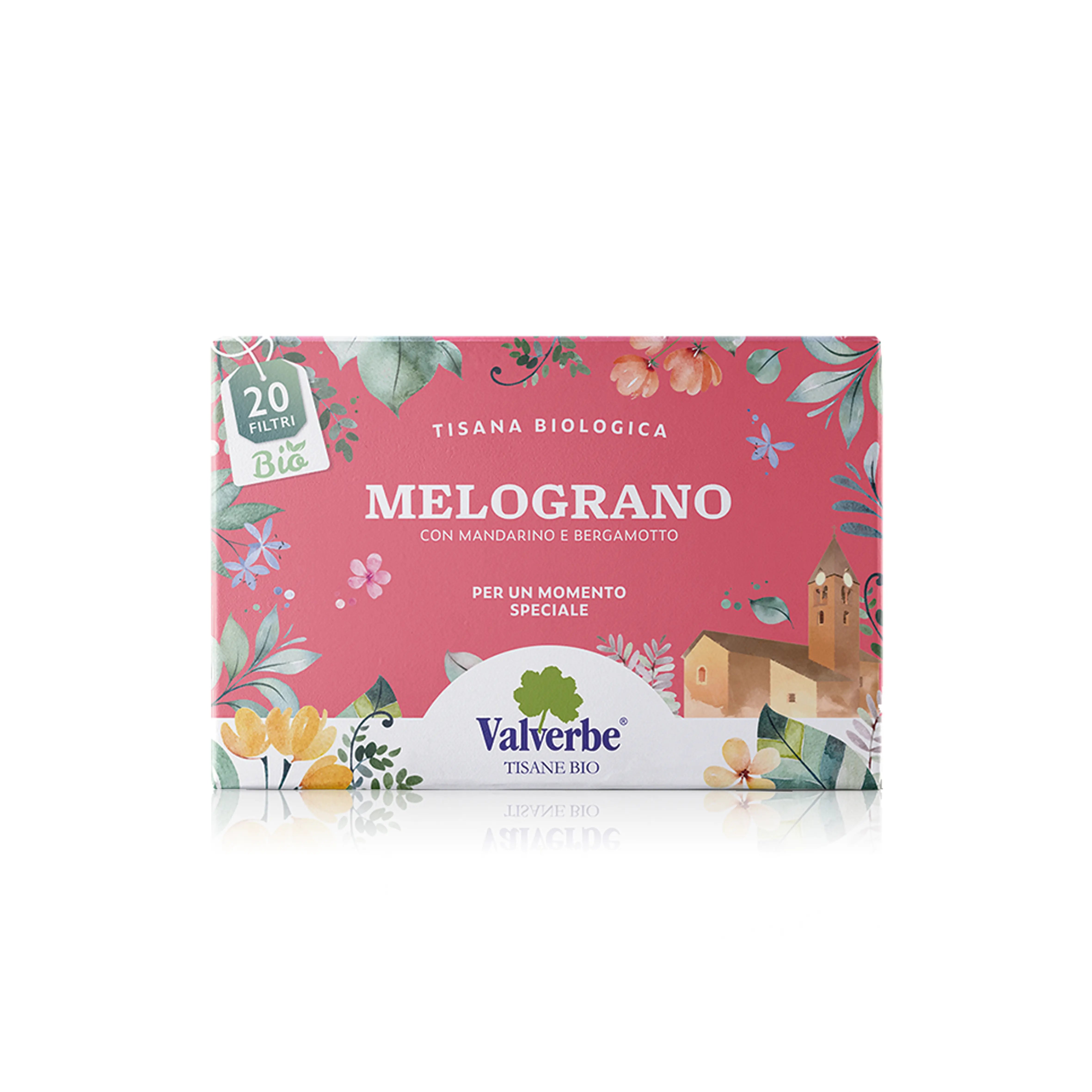 Pomegranate (Punica granatum L.) fruit* 20%, Mandarin (Citrus reticulata Blanco) fruit* 15%, Hibiscus (Hibiscus sabdariffa L.) flowers*, Green tea (Camellia sinensis (L.) Kuntze) leaves*, Dog rose (Rosa canina L.) fruit*, Bergamot (Citrus × bergamia Risso & Poit.) fruit* 10%, Cardamom (Elettaria cardamomum (L.) Maton) fruit*, natural pomegranate flavour. [*BIO]