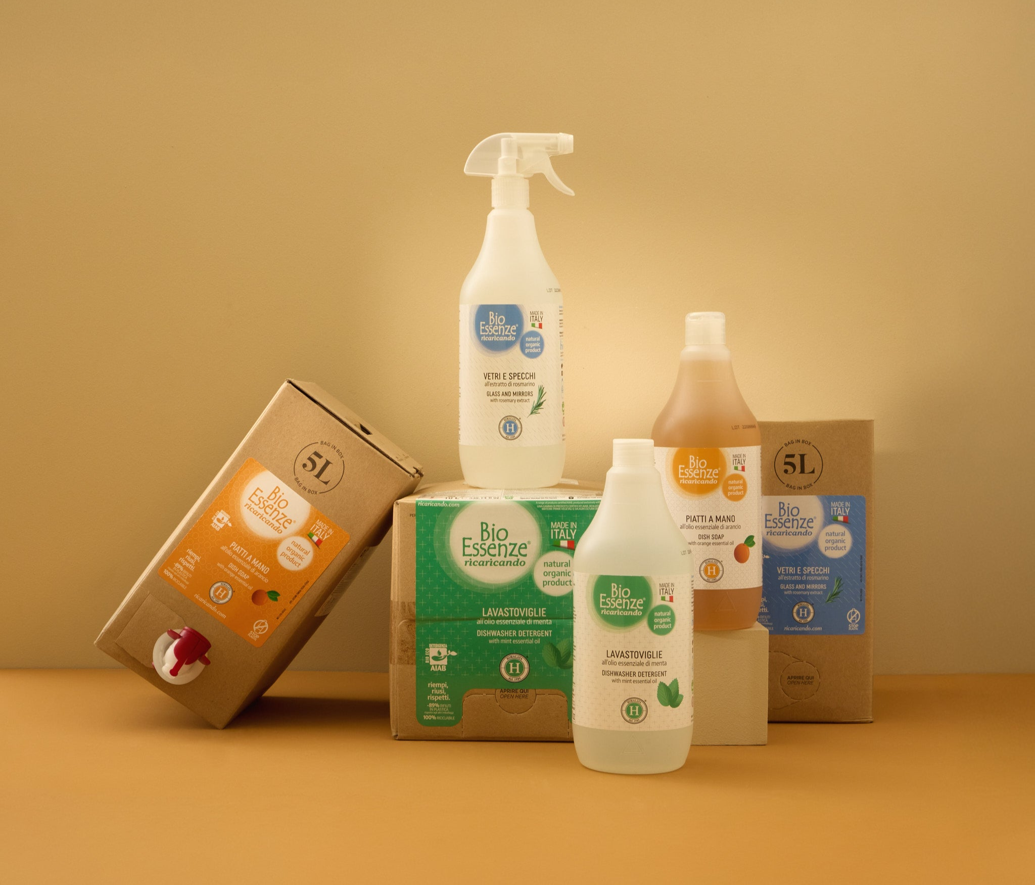 The Bio Essenze Ricaricando line is an innovative project launched in 2011, aimed at promoting conscious and sustainable consumption. It offers effective, organic and eco-friendly products for the home, made from 100% vegetable raw materials. Refill, reuse, respect.