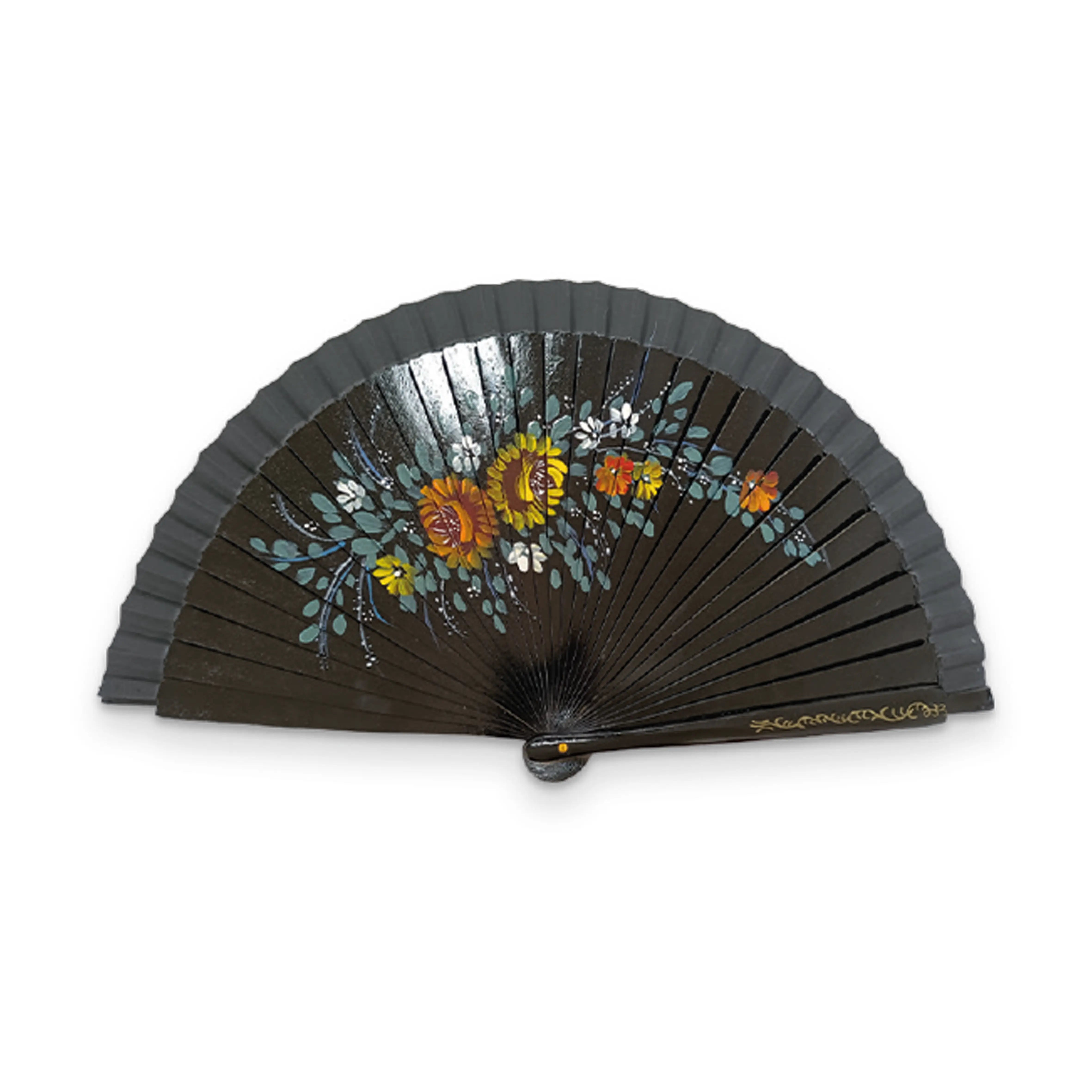 Hand-painted wooden and fabric fan, available in 6 variations and embellished with an elegant package covered in fabric of the same color as the fan: a thought to always carry with you.