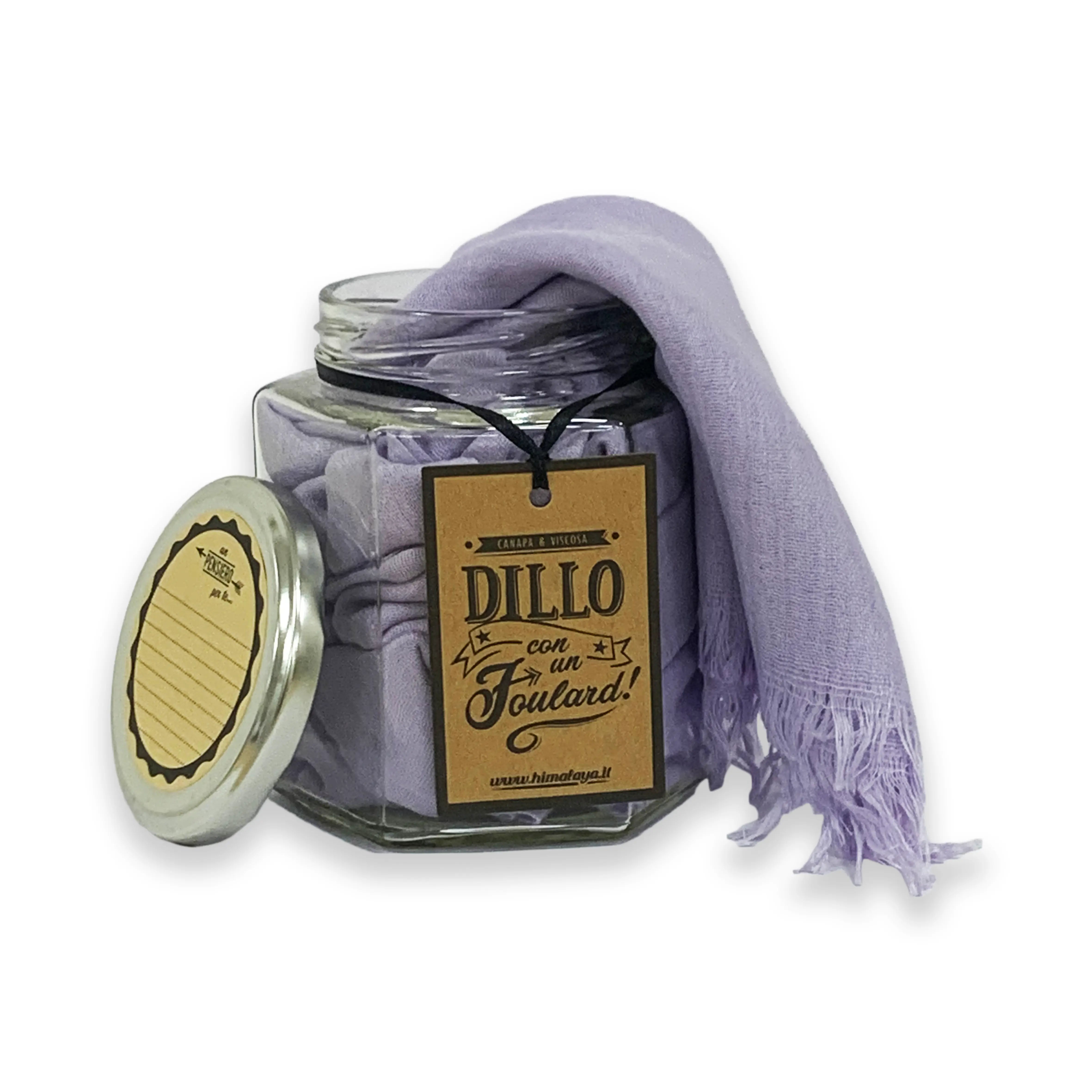 Scarf 70% viscose, from vegetable cellulose, and 30% hemp. Glass jar, aluminum cap and paper label.