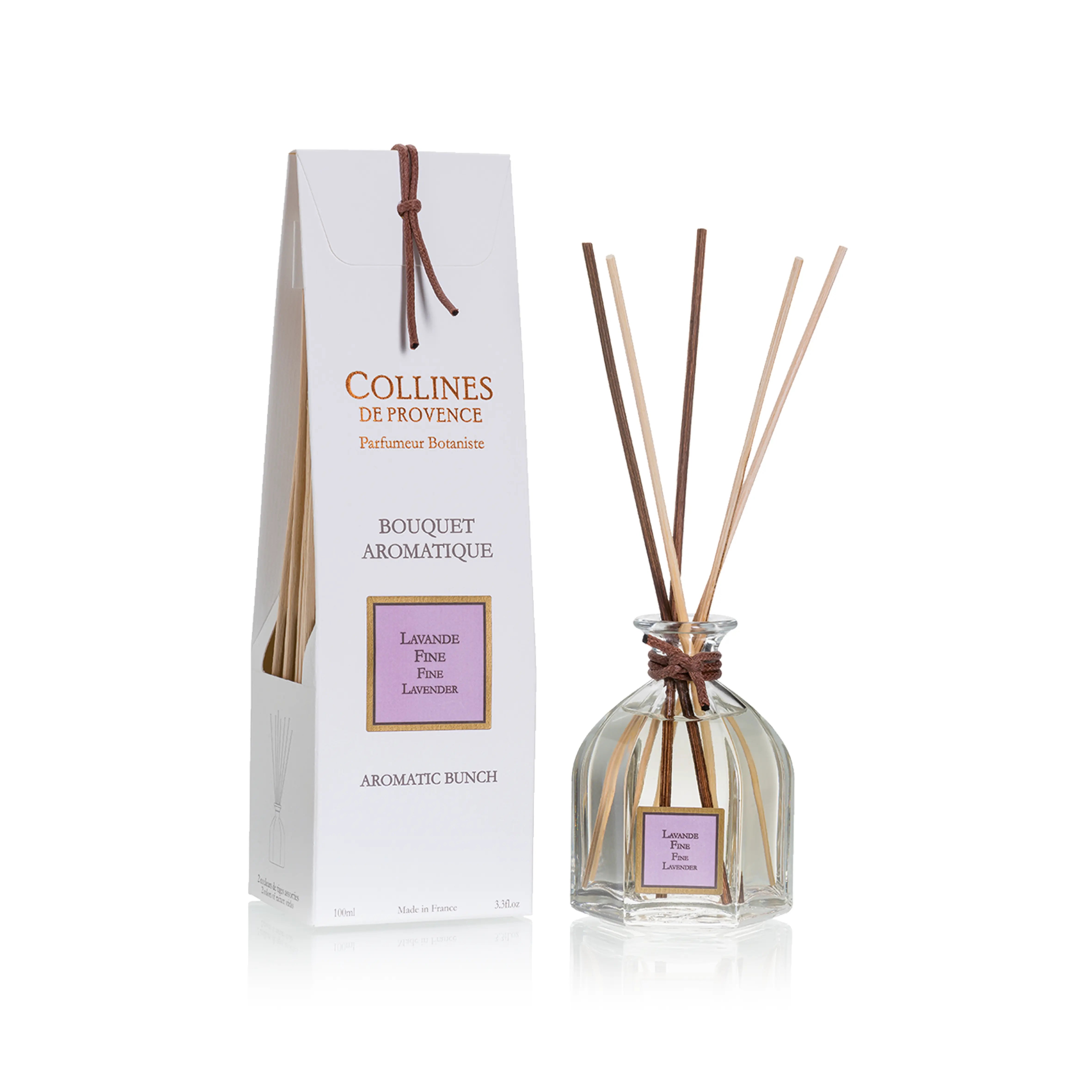 Esclusivi diffusori di profumo formulati dai maestri profumieri Collines de Provence e confezionati a mano nei laboratori di Mane, in Provenza. I bastoncini in legno naturale rilasciano un flusso costante di profumo, per una fragranza intensa e duratura.