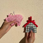 Tessuto e granuli vegetali. Confezione in carta e nastro in tessuto.