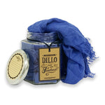 Foulard 70% viscosa, da cellulosa vegetale, e 30% canapa. Barattolo in vetro, tappo in alluminio ed etichetta in carta.