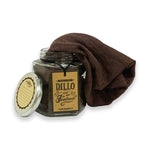 Foulard 70% viscosa, da cellulosa vegetale, e 30% canapa. Barattolo in vetro, tappo in alluminio ed etichetta in carta.