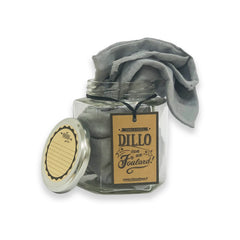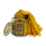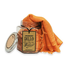 Foulard 70% viscosa, da cellulosa vegetale, e 30% canapa. Barattolo in vetro, tappo in alluminio ed etichetta in carta.