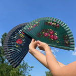 Ventaglio in legno e tessuto dipinto a mano, proposto in 6 varianti e impreziosito da un'elegante confezione rivestita in stoffa dello stesso colore del ventaglio: un pensiero da portare sempre con sé.
