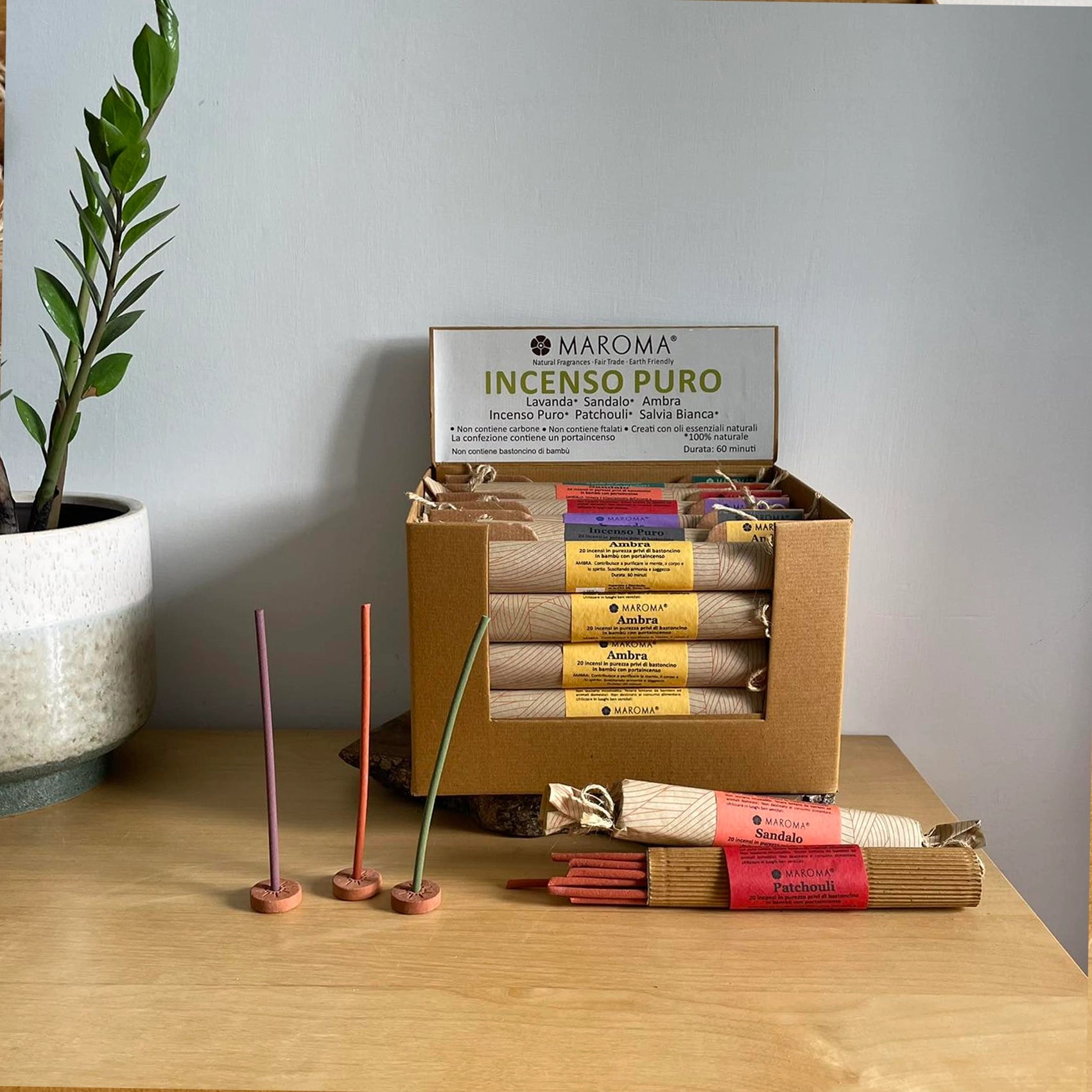 Maroma da sempre punta a creare un equilibrio interiore attraverso prodotti naturali, offre diverse linee pensate per il benessere e le emozioni olfattive. Tra queste, la linea di incensi premium Encens D'Auroville, l'antitarme naturale Colibrì e il profumo in olio Patchouli.