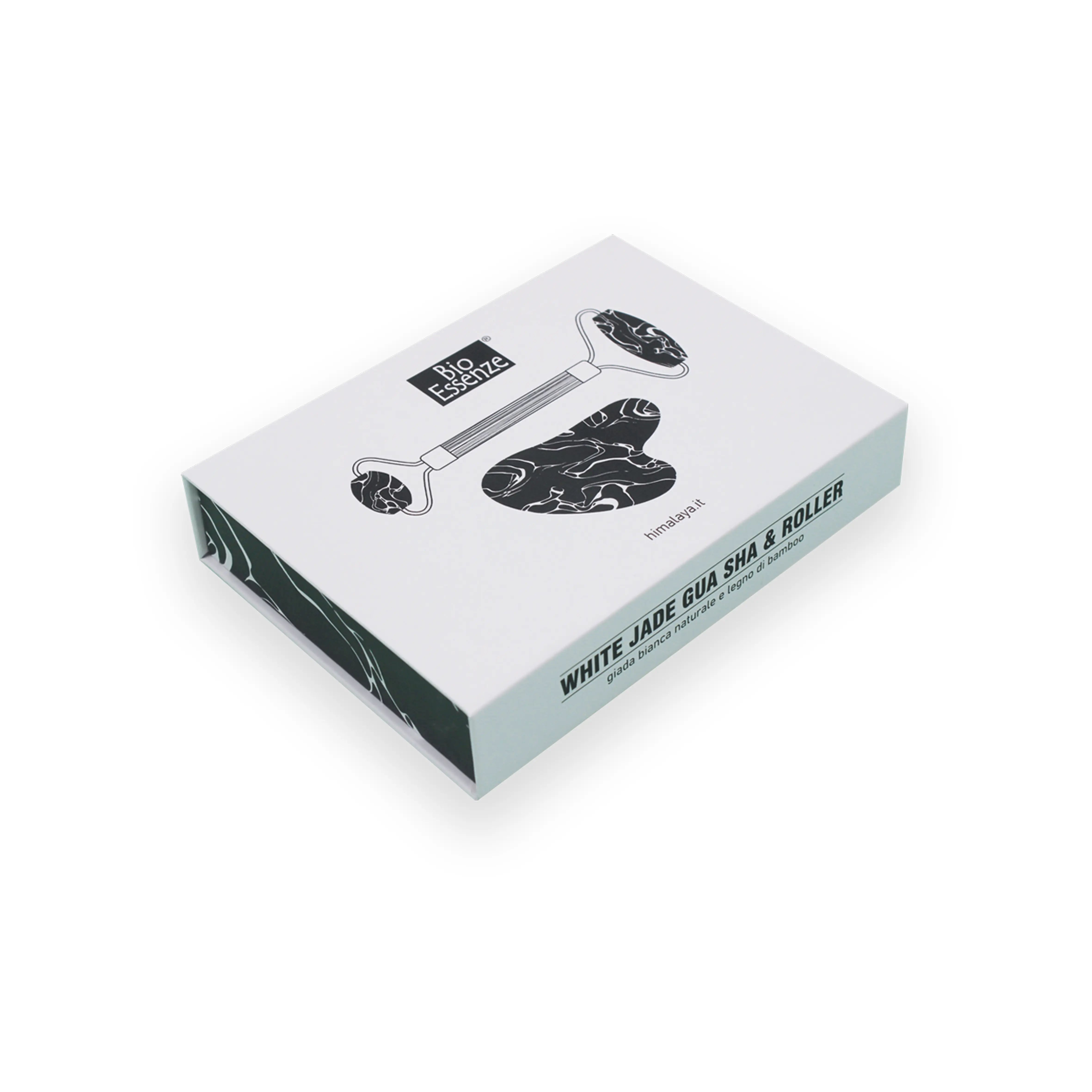 Il Gua Sha è un antico rituale di bellezza basato sui principi della medicina tradizionale cinese. Si tratta di una tecnica di massaggio che prevede l’impiego di pietre in grado di stimolare la circolazione sanguigna e il sistema linfatico. Il cofanetto Bio Essenze contiene un roller e una pietra piatta che, se utilizzati in sinergia, garantiscono i massimi benefici derivanti da questa pratica. Il Gua Sha è un rituale distensivo e rilassante, utile per il benessere di corpo e mente. Il massaggio e le proprietà delle pietre naturali hanno un effetto rivitalizzante ed energetico per il viso e per il corpo. La cute può risultare più compatta e luminosa, fin dalle prime applicazioni.