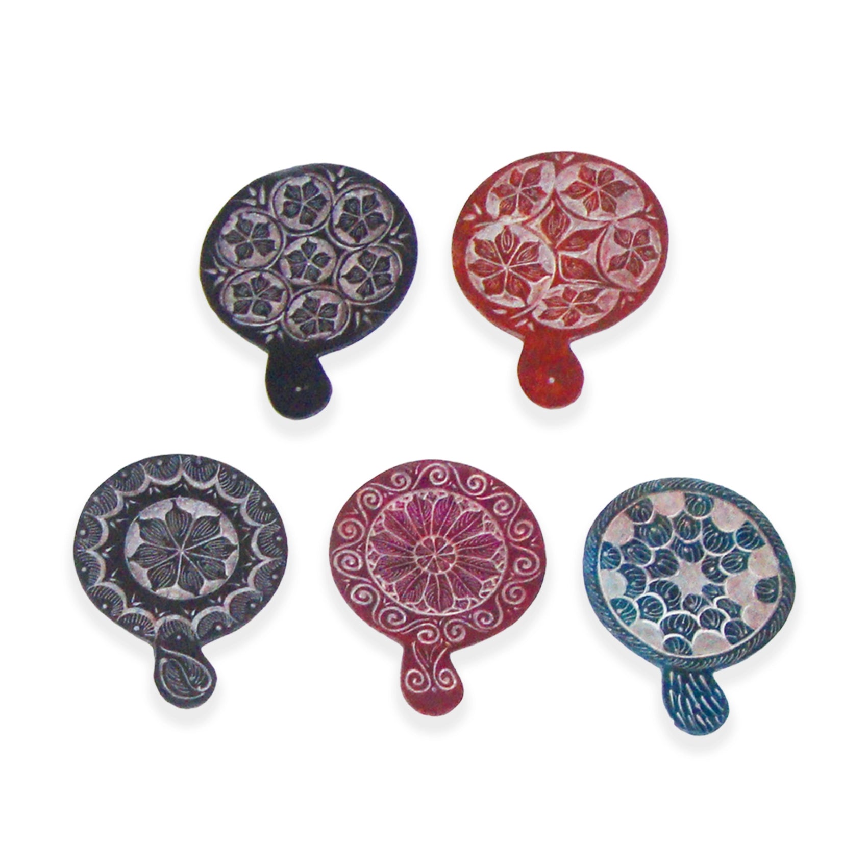 Portaincensi in Pietra Saponaria fatti a mano, ciascuno caratterizzato da colori e venature uniche.