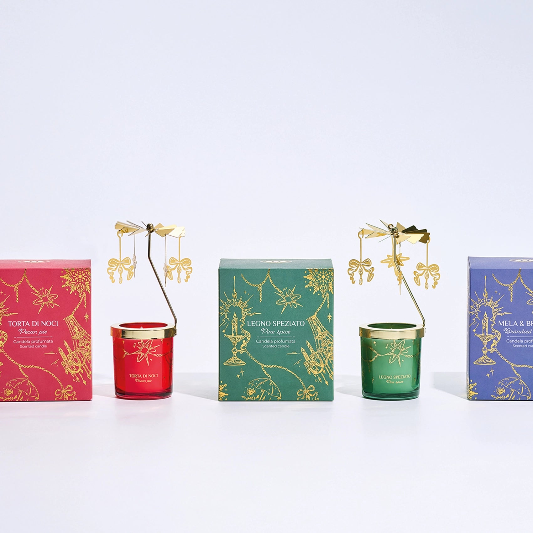 La candela Carosello Himalaya è realizzata con pura cera di soia naturale e arricchita da una delicata fragranza. La miscela di alta qualità assicura una combustione uniforme, diffondendo un profumo avvolgente e duraturo. Un tocco di magia la rende unica: è dotata di un raffinato carosello in metallo che ruota dolcemente grazie al calore della fiamma, affascinando grandi e piccoli con il suo incantevole movimento.