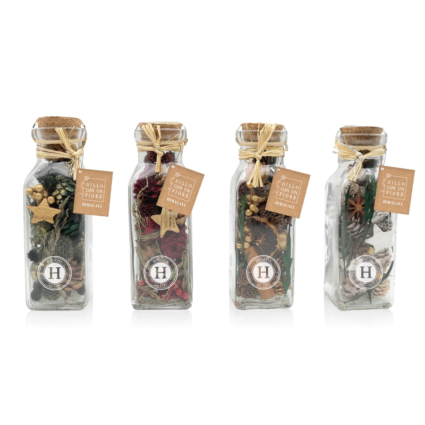 Il potpourri Himalaya è una miscela di fiori, foglie e spezie essiccate, arricchita con essenze naturali per profumare delicatamente ogni ambiente. Disponibile nei colori oro, verde, rosso e bianco, dona un tocco di eleganza e calore agli spazi, trasformandoli in un'esperienza sensoriale unica. Il cartellino è personalizzabile con una dedica.