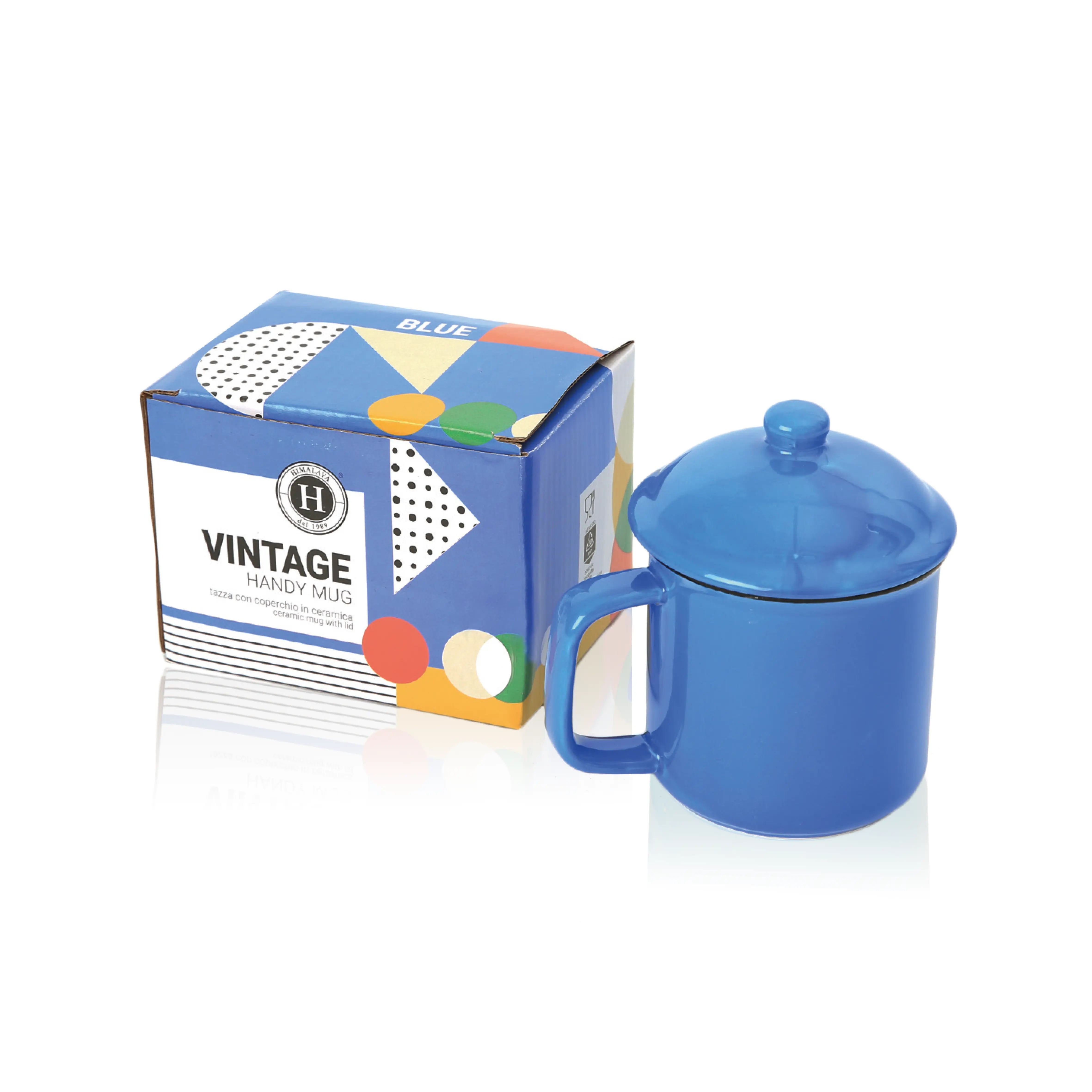 Tazze in ceramica con coperchio dal design vintage e originale.