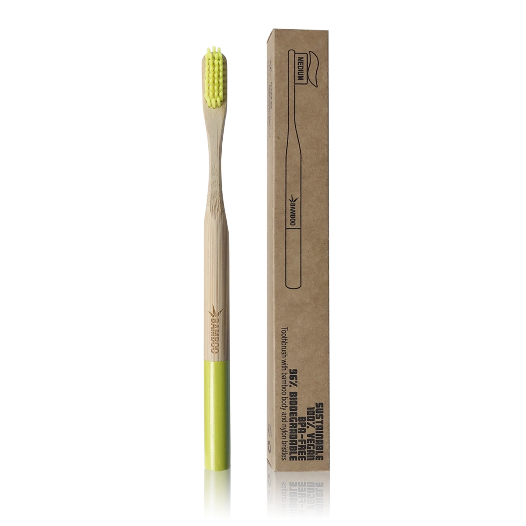 Lo spazzolino Bamboo Toothbrush Himalaya è un prodotto vegan, biodegradabile e amico dell’ambiente. Il legno di Bambù è molto duro, ma al contempo leggero ed eccezionalmente resistente. Completamente sostenibile, è una risorsa facilmente rinnovabile: rigenera molto in fretta, è la pianta col più alto tasso di crescita esistente e non ha necessità di reimpianto. Ha inoltre proprietà antibatteriche naturali. Le setole, realizzate in nylon senza BPA, detergono a fondo ma delicatamente, senza irritare le gengive.