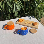 Tazza in ceramica e coperchio in legno. Scatola in carta.