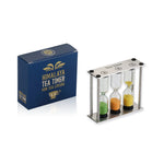 Timer per il tè da 3, 4 e 5 minuti. In acciaio inossidabile e vetro.